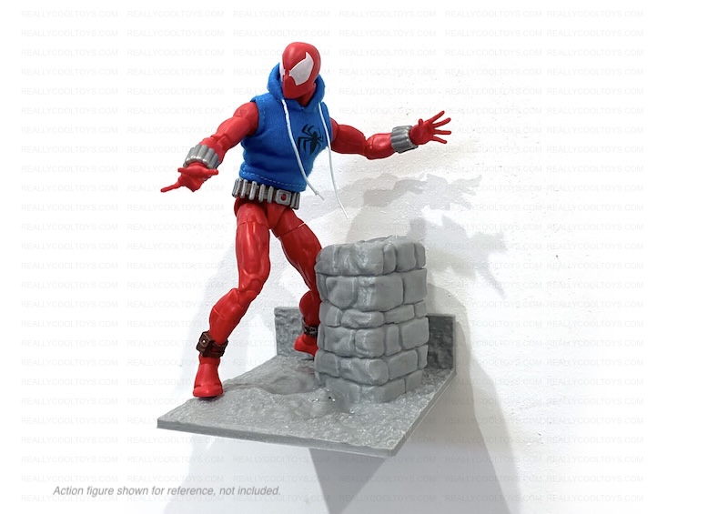 The BMP Ground and Stone Pillar (one piece) is a 1:12 scale miniature desk or wall-mountable (double-sided adhesive tape not included) diorama, designed to complement 1:12 scale action figures (not included) from popular figure series by Hasbro, Marvel Legends, McFarlane, Mafex, S.H. Figuarts, Mezco, NECA, Figma, Jada Toys, Storm Collectibles, Star Wars Black Series, CT Toys, and others. May also be used in 1:6-1:18 scale diorama as applicable. Action figure(s) not included.